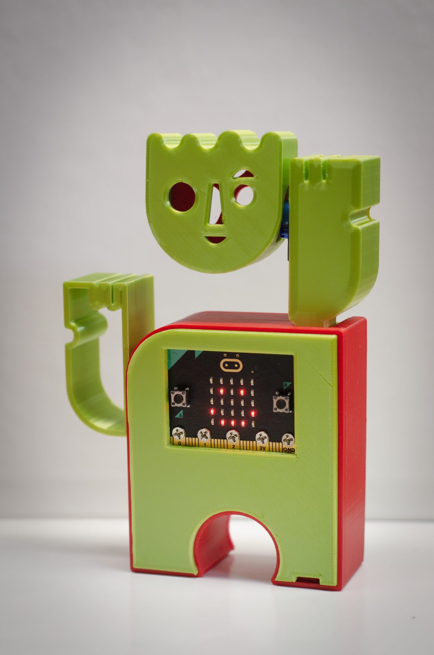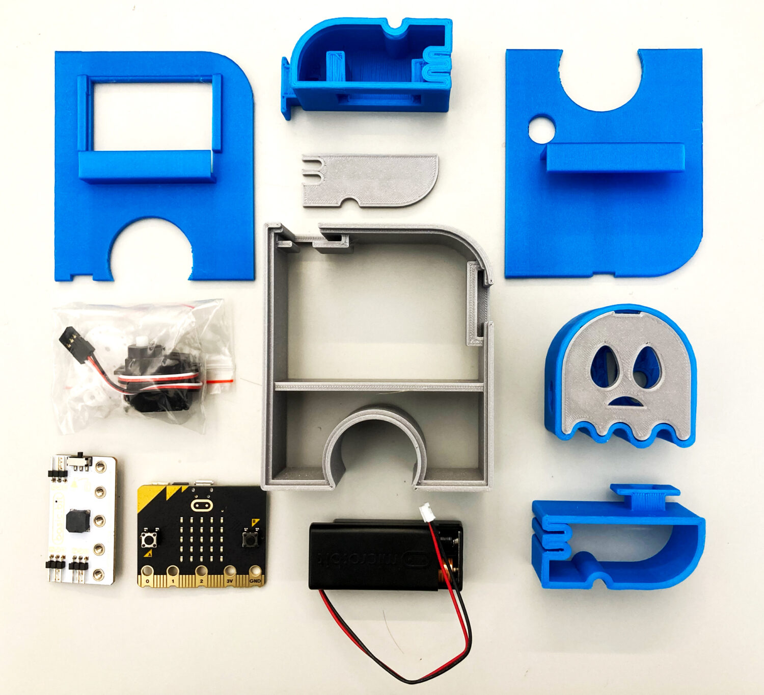 After being shaken, this toy—created with simple coding, a Microsoft Micro:bit, and 3D-printed parts—counts down a seizure’s duration. When the timer starts, a servo motor is triggered to flip the head into a ghost state. When the timer finishes, the character head returns to its normal position.