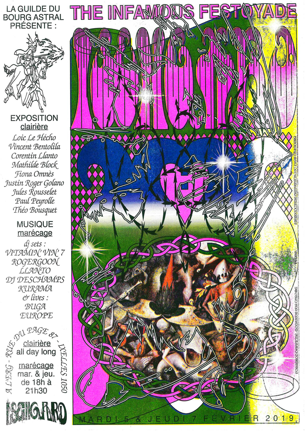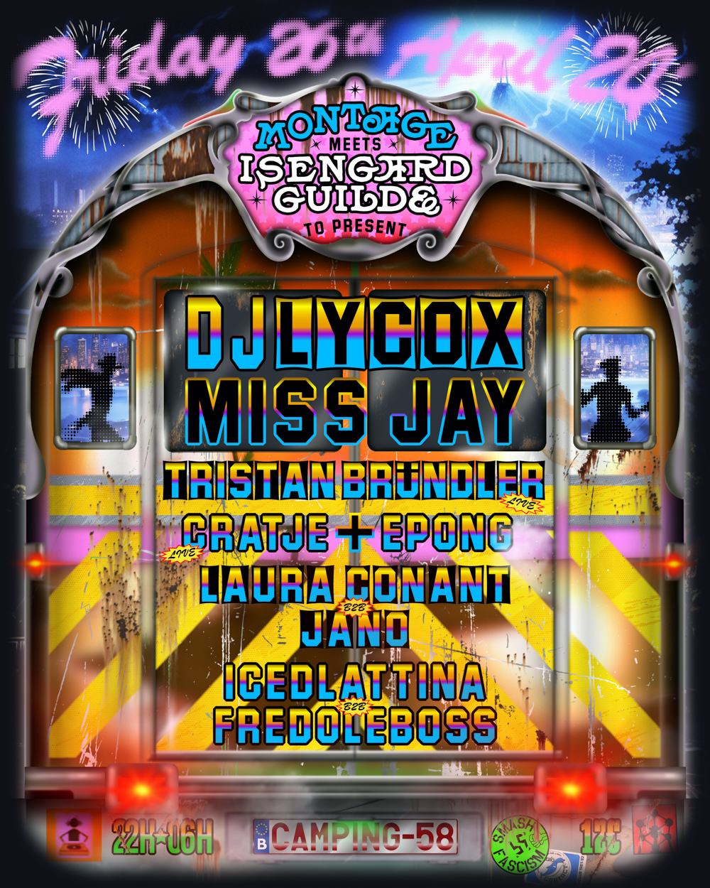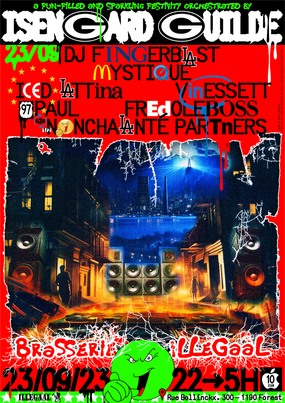 This ongoing poster series was created for the Brussels-based collective “Isengard Guilde” known for its eclectic and forward-thinking lineups spanning club music, rap, and ambient. With full creative freedom, each design explores bold typography, figurative forms, and explosive colors, highlighting the lineup while pushing visual experimentation.
