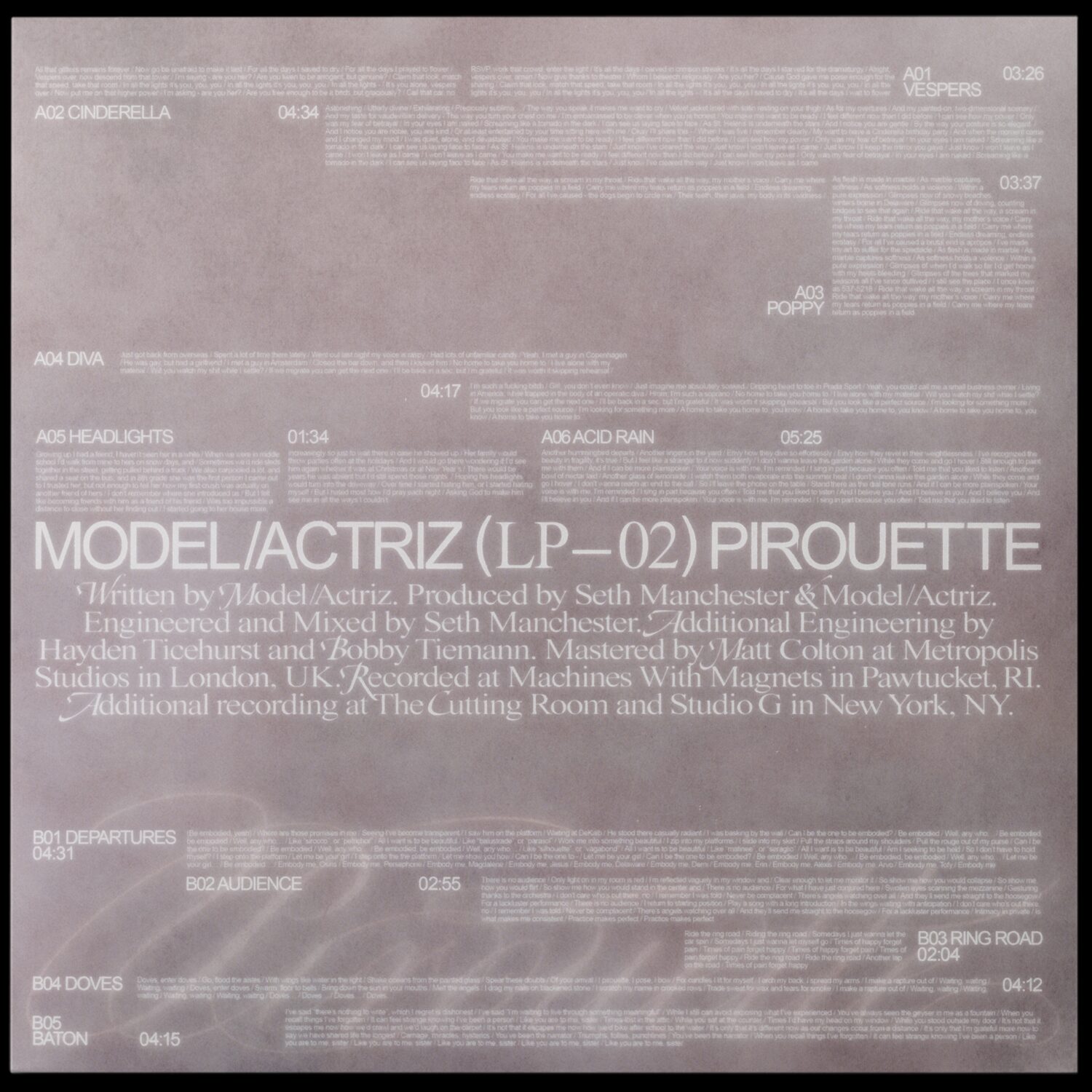 Art direction and design for Model/Actriz’ sophomore album “Pirouette” including vinyl and CD packaging, posters, and merch.