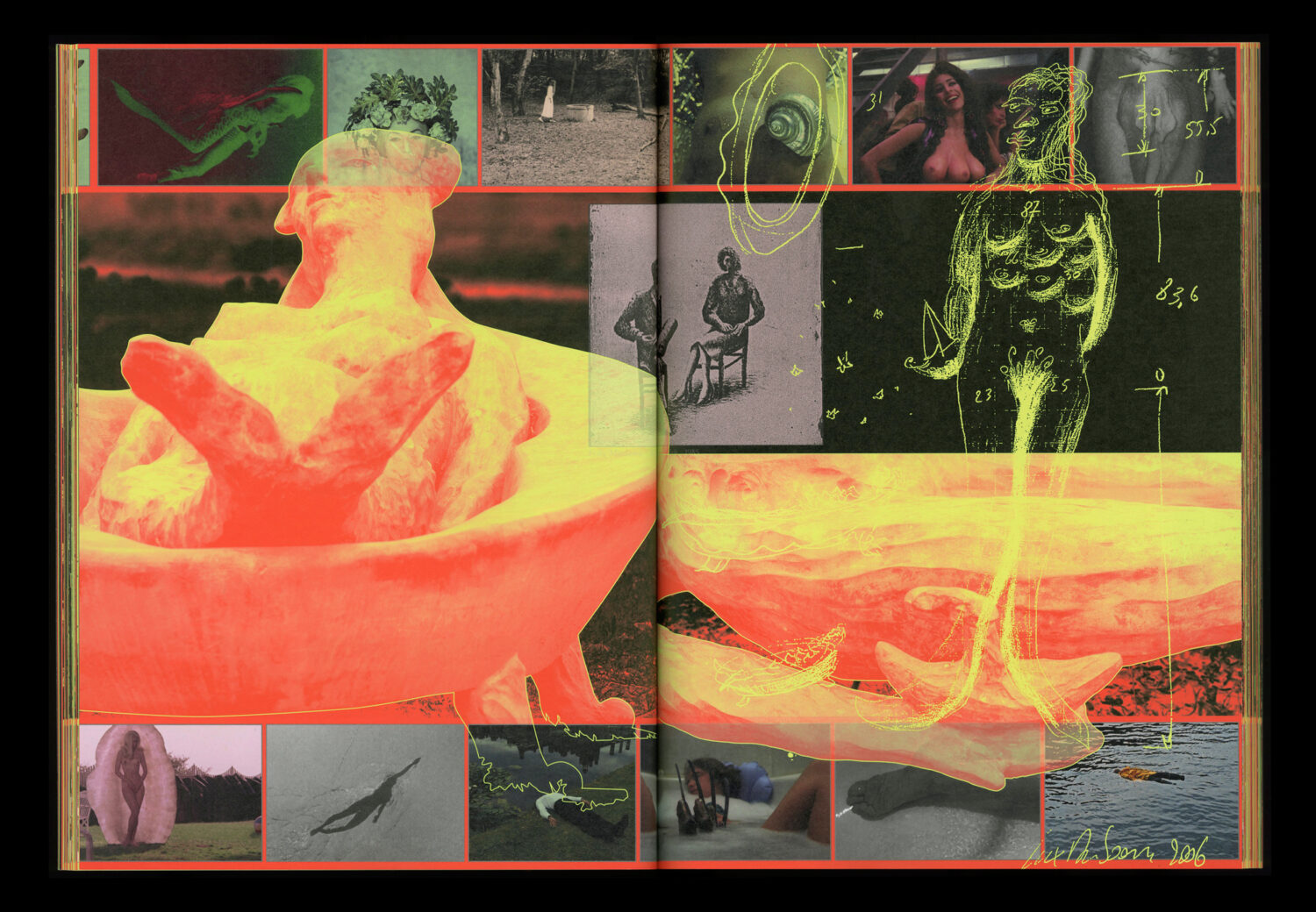 The pages function as theatrical stages where artworks, movie stills, and book titles coexist and interact, fostering discovery and speculation. This interplay transforms the collection into a living, reconfigurable entity. The deliberate juxtaposition of these elements challenges readers to form their own associations, inviting reinterpretation and fresh perspectives. Beyond its visual storytelling, the book embodies a methodology of disassembly and reassembly. By breaking away from traditional classifications, the design allows the collection to be seen as a fluid and evolving „pool“ of connections, interpretations, and stories. The result is a multilayered, immersive book that invites readers into a dialogue between art, popular culture, and personal imagination.